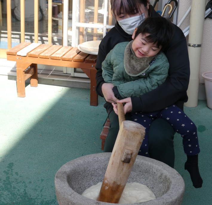 皆でついたおもちは美味しかったようで笑顔が溢れていました☻