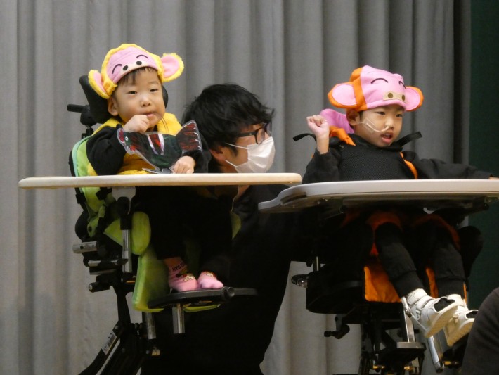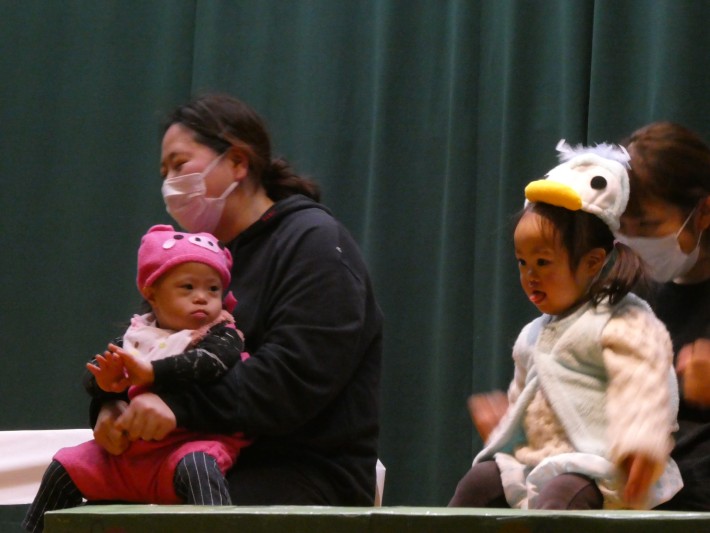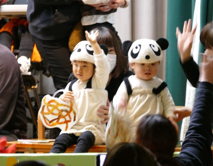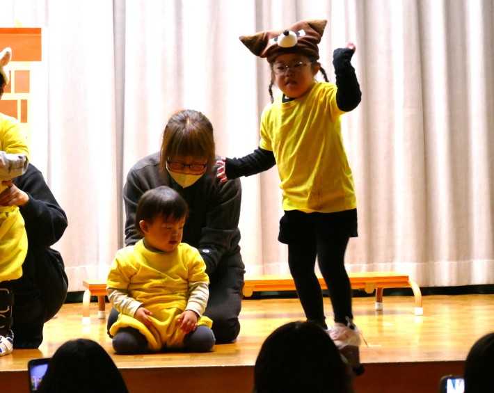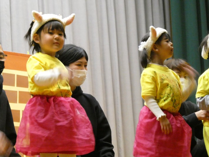 はな組は「おおかみと7匹の子やぎ」。最後はみんなでおおかみさんをこちょこちょして、みんなで仲良くリトミックをおこないました。