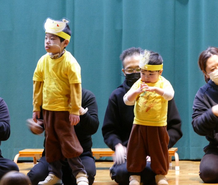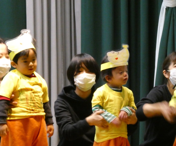 ゆき組は「チャップン野菜のお風呂」。お風呂に入った野菜さん、入りたくない野菜さんとで最後は仲良く踊りました(^^)/