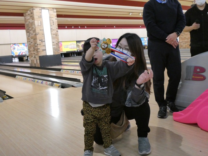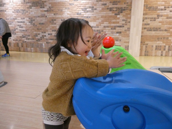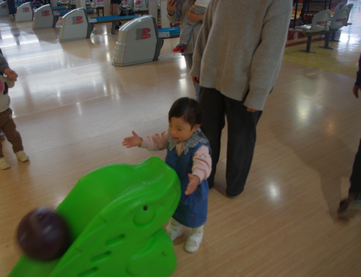 普段の保育でも行っているボウリング。大きな音にびっくりする子もいましたがどの子も楽しむことができました。
