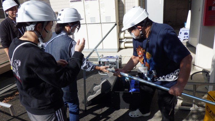 仮設トイレを確認したり、発電機や投光器を動かしました。