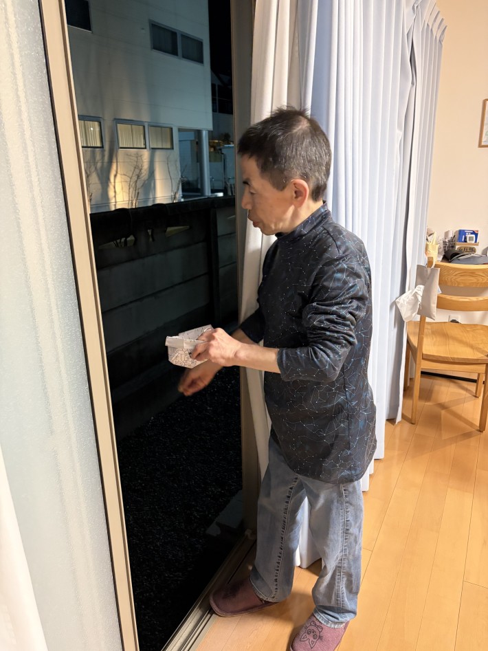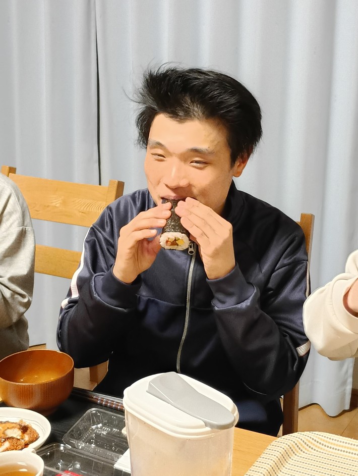 節分の日にホームで恵方巻を食べ、豆まきをしました(^^)