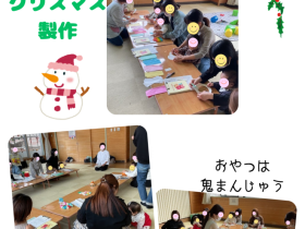今回はクリスマス製作をおこないました。紙皿の雪だるまに帽子や鼻の飾りを付けたり、花紙をくしゅくしゅ丸めたりして楽しみました。