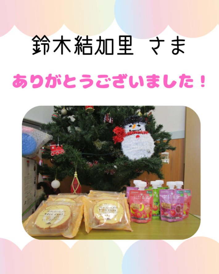 こどもたちにロールケーキとジュレを届けてくださいました。
