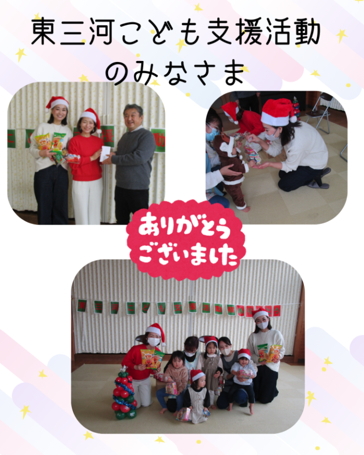 東三河こども支援活動のサンタさんがプレゼントを持って来てくださいました。