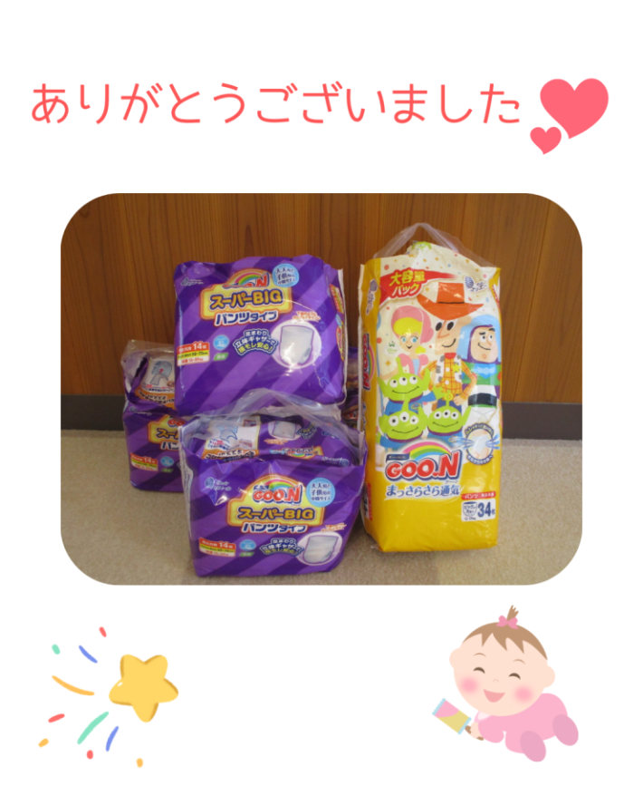 こどもたちのために、寒い中オムツを届けてくださいました。