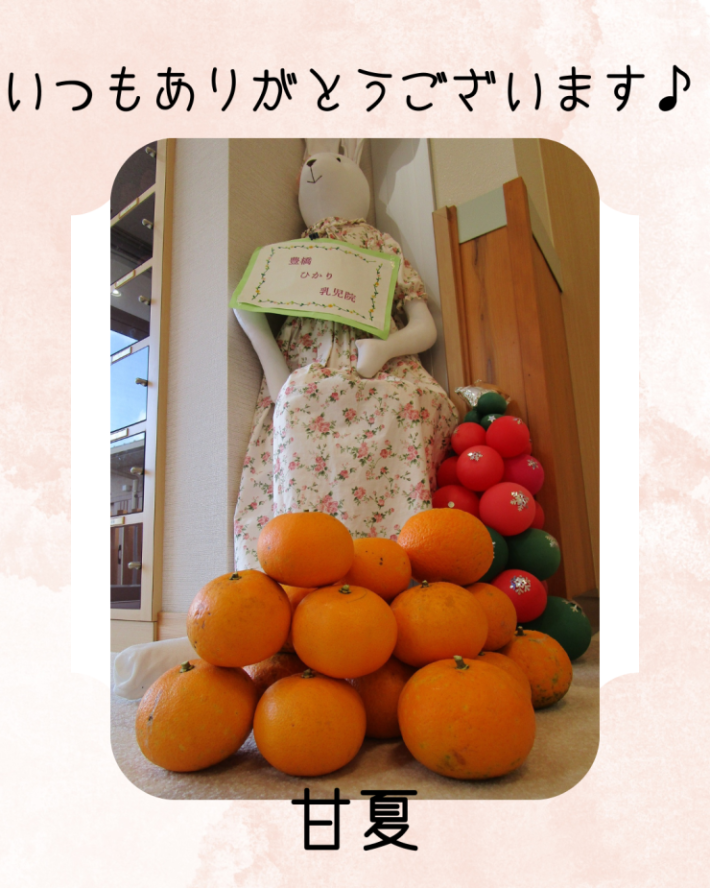 寒い中、こどもたちにと、収穫してくれた甘夏を届けてくださいました。