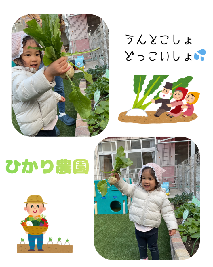 こどもたちが力を合わせてカブを抜く姿は、まるで『おおきなかぶ』の絵本のよう。