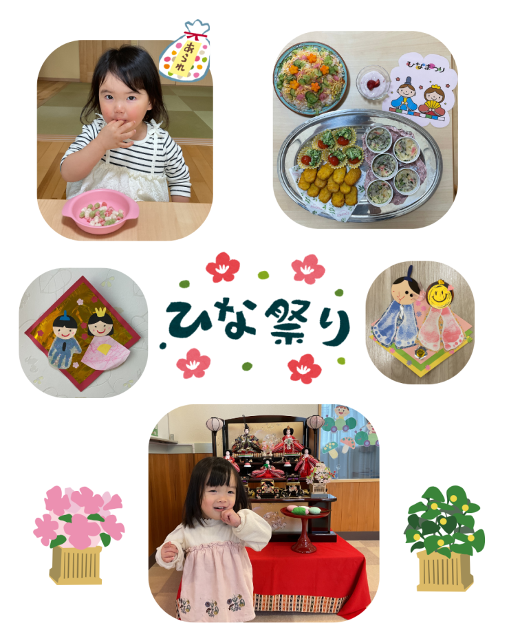 製作でひなあられや手形足形アートのおひなさまを作ったり、