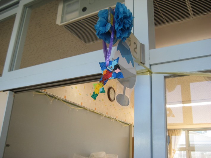 年長児のクラスの前にはラキューブロックで作った「ひいらぎいわし」が飾ってありました。鬼の登場に涙する子もいましたが、大好きなお菓子拾いですぐに笑顔に戻っていました。お菓子は本日のおやつとして食べる予定です。日本の伝統行事を通じて子どもたちの心の成長を育んでいきたいと思います。