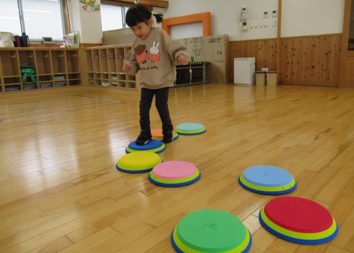 踏むと音が鳴るマット。踏むたびにド♪レ♪と音が鳴る楽しいマットです。運動あそびで使わせていただきます。