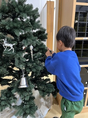今日は、園内にクリスマスツリーを飾ったよ。