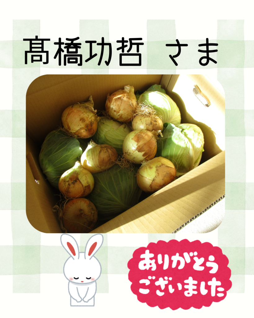 2026.04.27 髙橋功哲 さま ありがとうございます。 新鮮キャベツと新玉ねぎをこどもたちにと届けてくださいました。 いつもお心遣いに感謝いたします。 豊橋鉄道労働組合様からのご寄贈です 前の記事