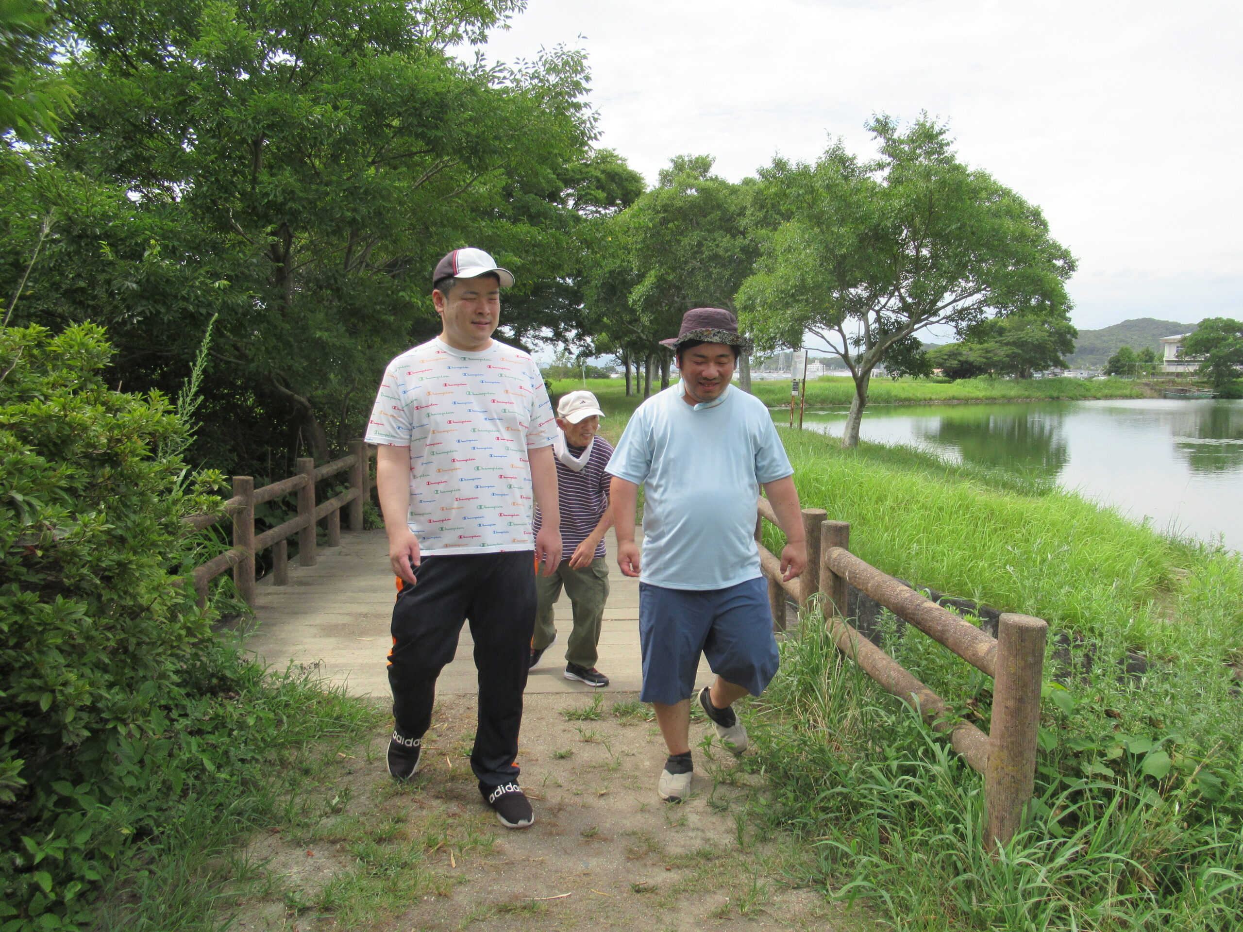 施設の周辺や近隣の公園を歩行したり、体育館へ行ってボールなどを使って楽しく体を動かしたりしています。